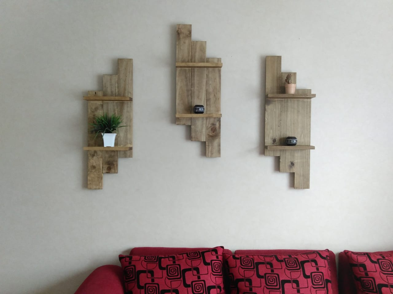 Juego Repisa Deco incluye tres repisas deco de madera pintadas con protector de madera lavable cerestain.
